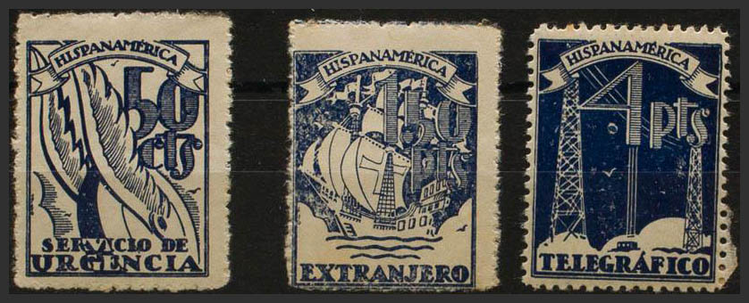 ★(1940ca). 50 cts azul SERVICIO DE URGENCIA, 1´50 pts azul EXTRANJERO y 4 pts azul TELEGRAFICO. MAGNIFICAS Y RARAS.