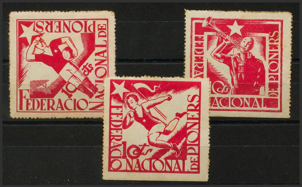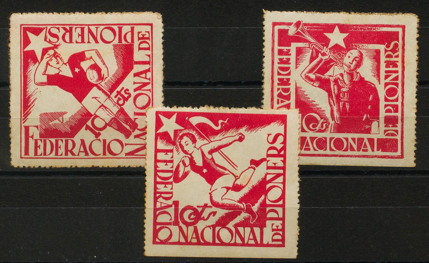 ★1937. Serie completa, a falta del 10 cts (Biblioteca) en color carmín (conservación habitual). FEDERACIO NACIONAL DE PIONERS. BONITA. (Guillamón 2399/01a, Doménech 1738a, 1740a, 1741a)