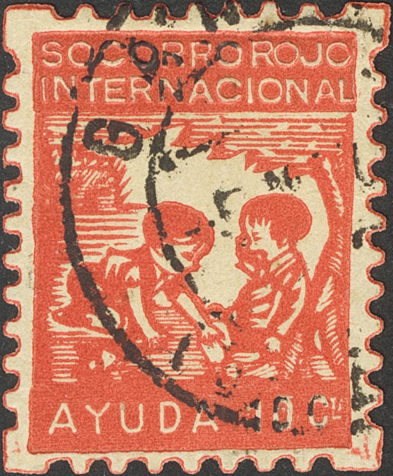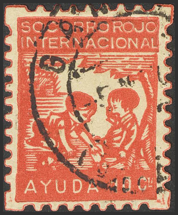 1937. 10 cts rojo. S.R.I. AYUDA (niños grandes). MAGNIFICO Y RARO. (Allepuz 1181, Domenech 68)