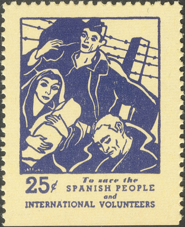 (★)1937. 25 cts azul sobre amarillo. TO SAVE THE SPANISH PEOPLE AND INTERNATIONAL VOLUNTEERS. MAGNIFICA. (Allepuz 2595, Domenech 2068)