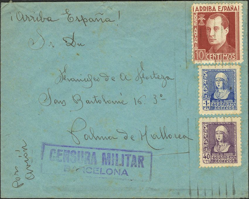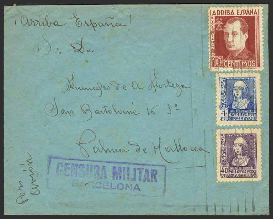 Guerra Civil. Viñeta. Por avión. Al dorso llegada.
