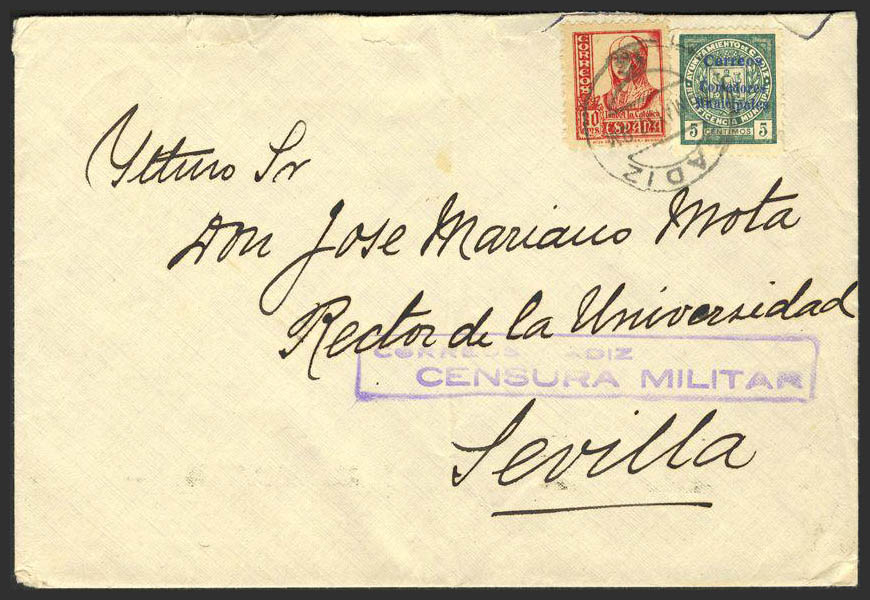 Guerra Civil. Viñeta. Al dorso llegada.
