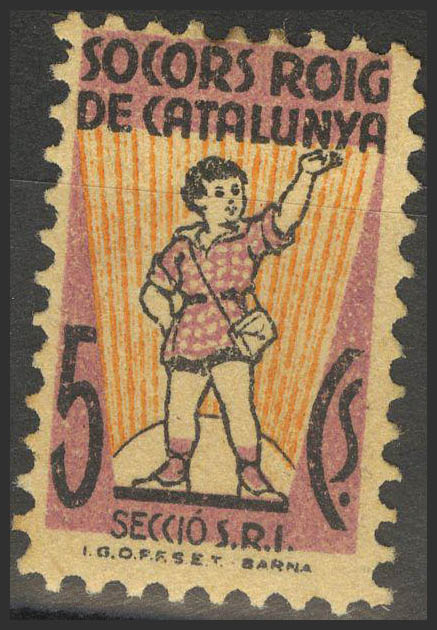 ★1937. 5 cts violeta y naranja. SOCORS ROIG DE CATALUNYA. MAGNIFICA. (Guillamón 1591)