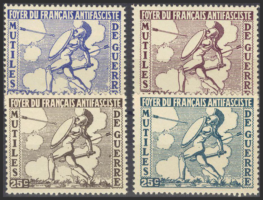 (★)1937. Serie completa. FOYER DU FRANCAIS ANTIFASCISTE, MUTILES DE GUERRE. MAGNIFICA. (Guillamón 2231/34).