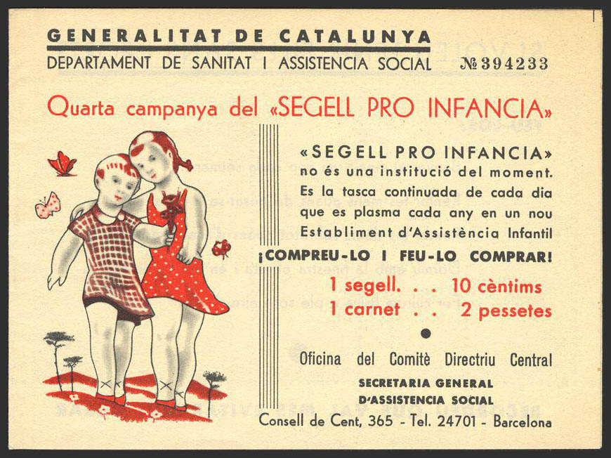 ★★1936. 5 cts multicolor, CARNET COMPLETO. SEGUELL PRO INFANCIA. MAGNIFICO CON EXCEPCIONAL CONSERVACION POCO HABITUAL EN ESTA PIEZA. (Guillamón 2285).