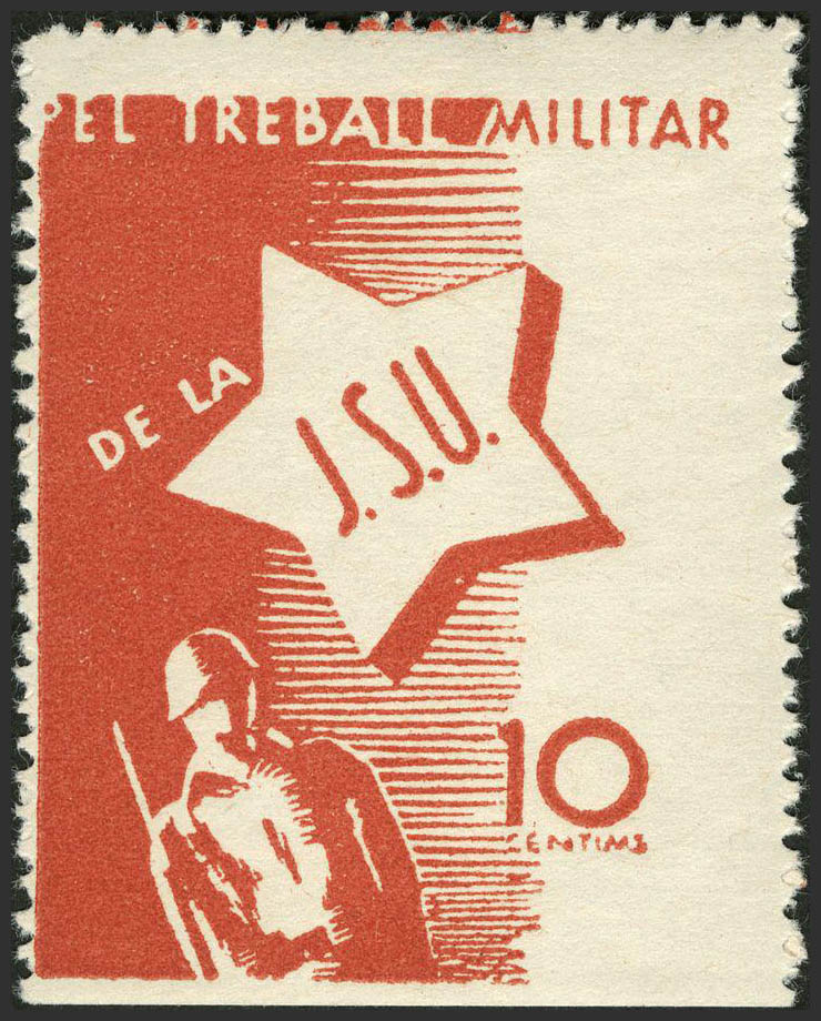 ★1937. 10 cts rojo. J.S.U, EL TREBALL MILITAR. MAGNIFICA. (Guillamón 2374).