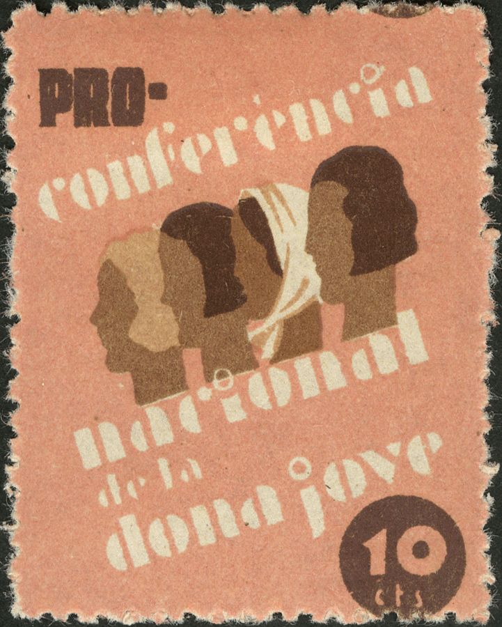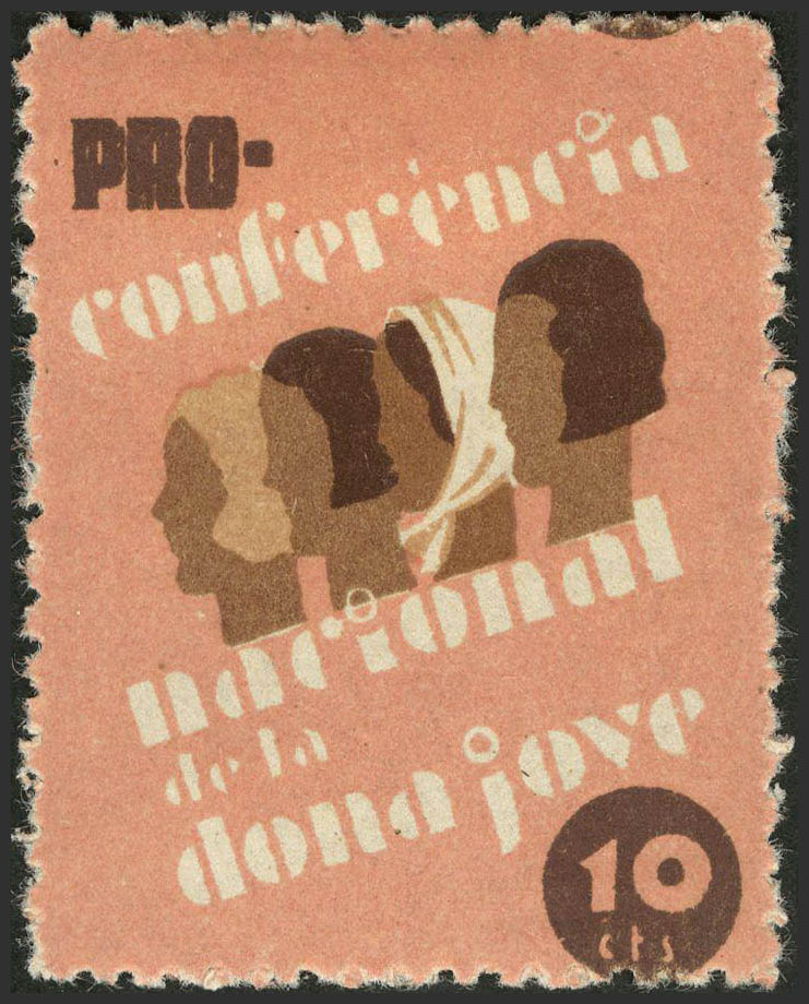 ★1937. 10 cts rosa y castaño. PRO-CONFERENCIA NACIONAL DE LA DONA JOVE. MAGNIFICA Y RARA. (Guillamón 2409).