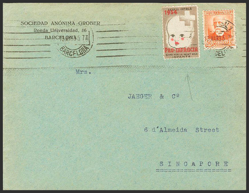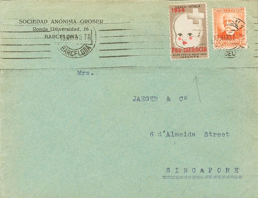 Guerra Civil. Viñeta. SEGUELL PRO INFANCIA. SUCURSAL 1 / BARCELONA. MAGNIFICA.