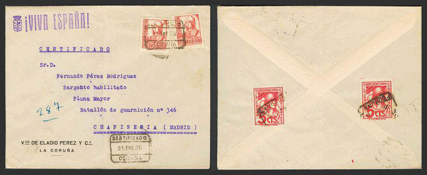 Guerra Civil. Viñeta. CERTIFICADO / CORUÑA. MAGNIFICA.