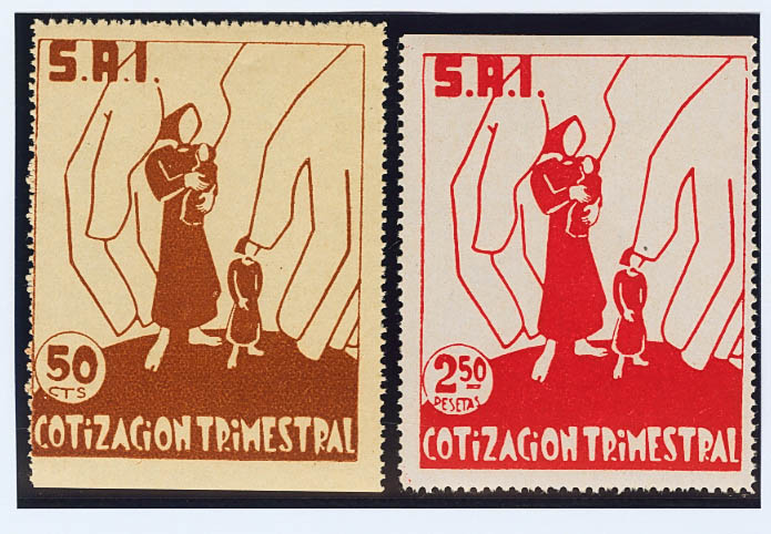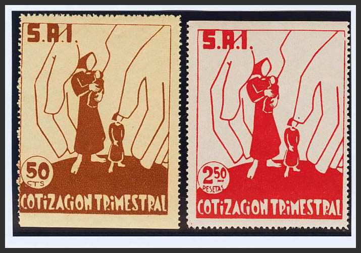 ★1937. 50 cts castaño y 2´50 pts rojo. S.A.I. COTIZACION TRIMESTRAL. MAGNIFICOS. (Guillamón 1571, 1574)