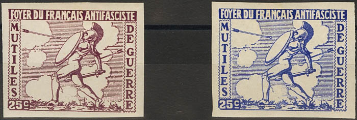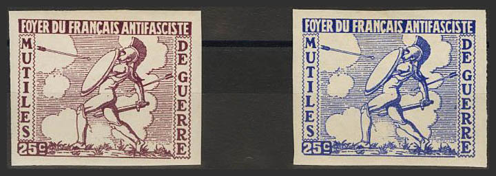 ★1937. 25 cts azul y 25 cts violeta castaño. MUTILES DE GUERRE. MAGNIFICOS. (Guillamón 2235, 2236)