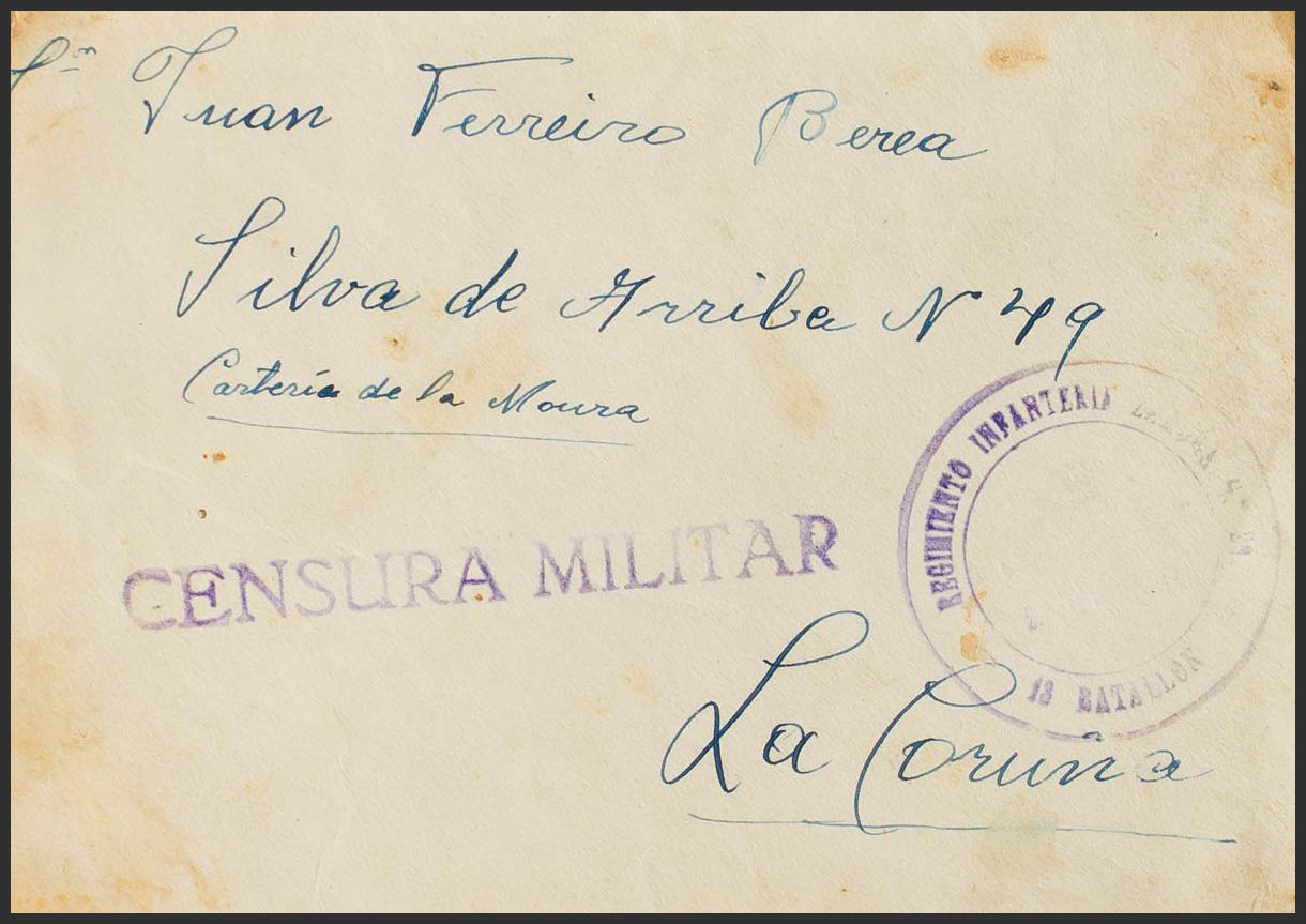 (1938ca). Circulada a LA CORUÑA. Marca REGIMIENTO INFANTERIA ZAMORA Nº29 / 13 BATALLON. MAGNIFICA.