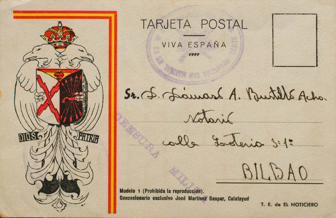 Guerra Civil. Bando Nacional. Marca REGTO. INFANTERIA SAN MARCIAL Nº22, en el frente de Teruel. MAGNIFICA.