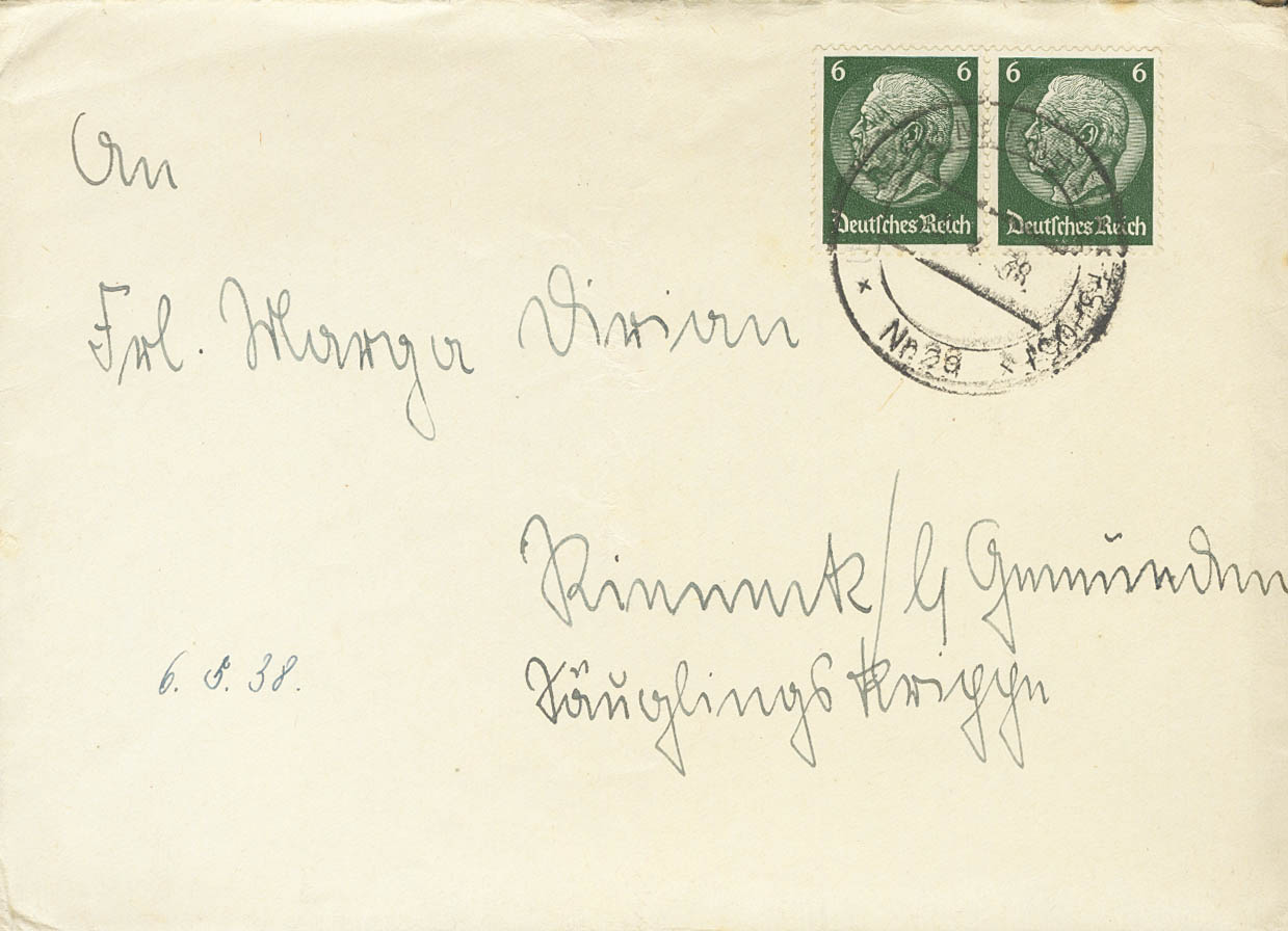 1938. 6 p verde de Alemania, pareja. Carta con varias cartas en el interior de ALGECIRAS a ALEMANIA. Matasello DEUTSCHE MARINE SCHIFFPOST / Nº29, remitida desde el Acorazado Admiral Scheer, uno de los buques enviados por Alemania para la protección y control de material bélico a las tropas del bando nacional, en el llamado Comité de No Intervención. MAGNIFICA Y RARA CON ORIGEN EN ALGECIRAS.