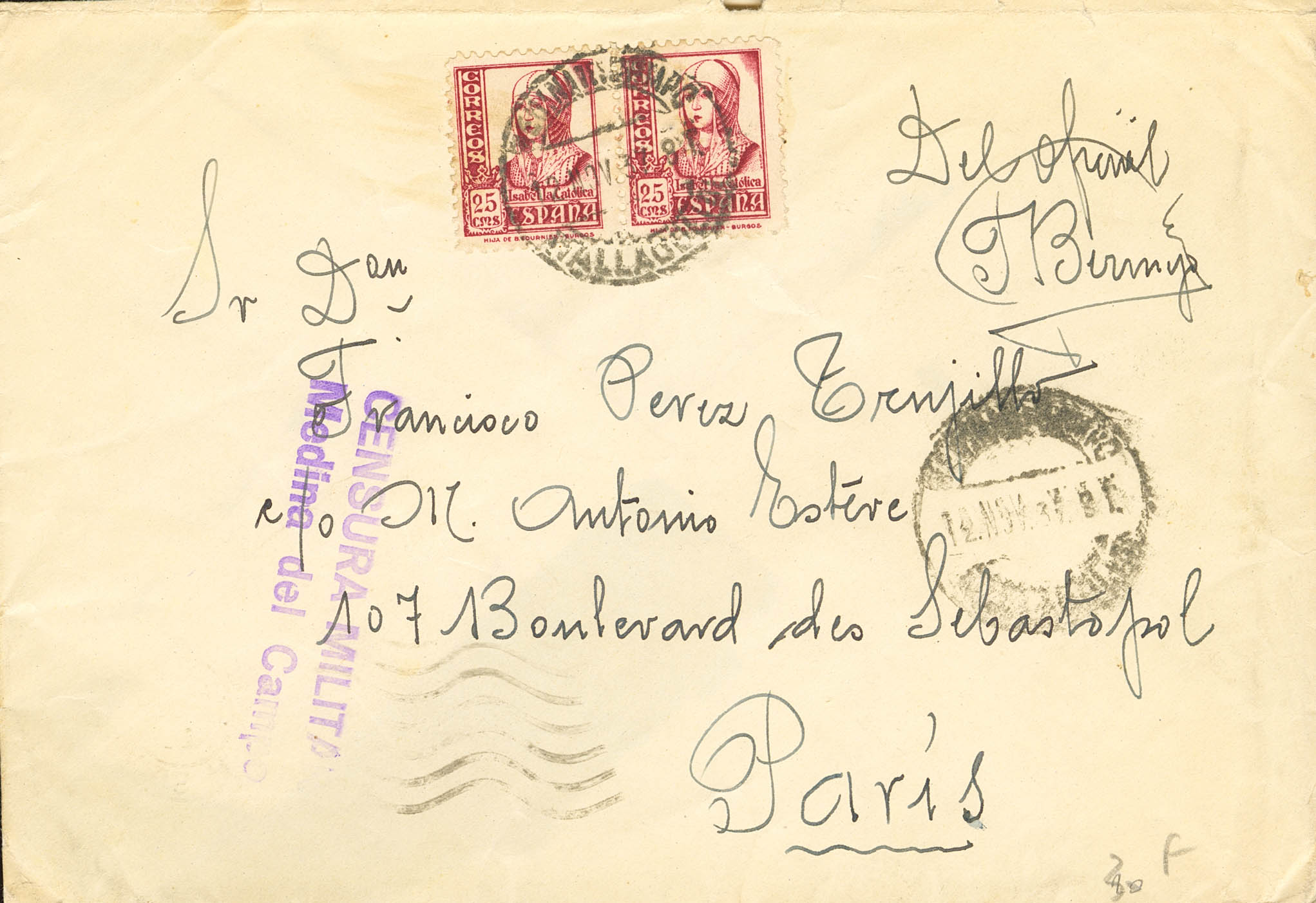 Guerra Civil. Bando Nacional. CENSURA MILITAR / MEDINA DEL CAMPO, de Valladolid. MAGNIFICA.
