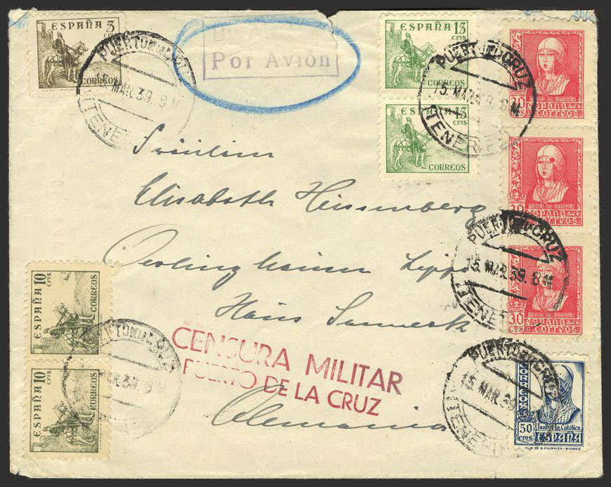 Guerra Civil. Bando Nacional Correo Aéreo. PUERTO DE LA CRUZ / TENERIFE.