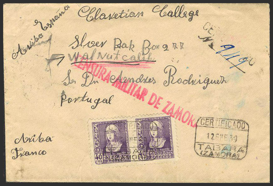 Guerra Civil. Bando Nacional Correo Certificado. MAGNIFICA.