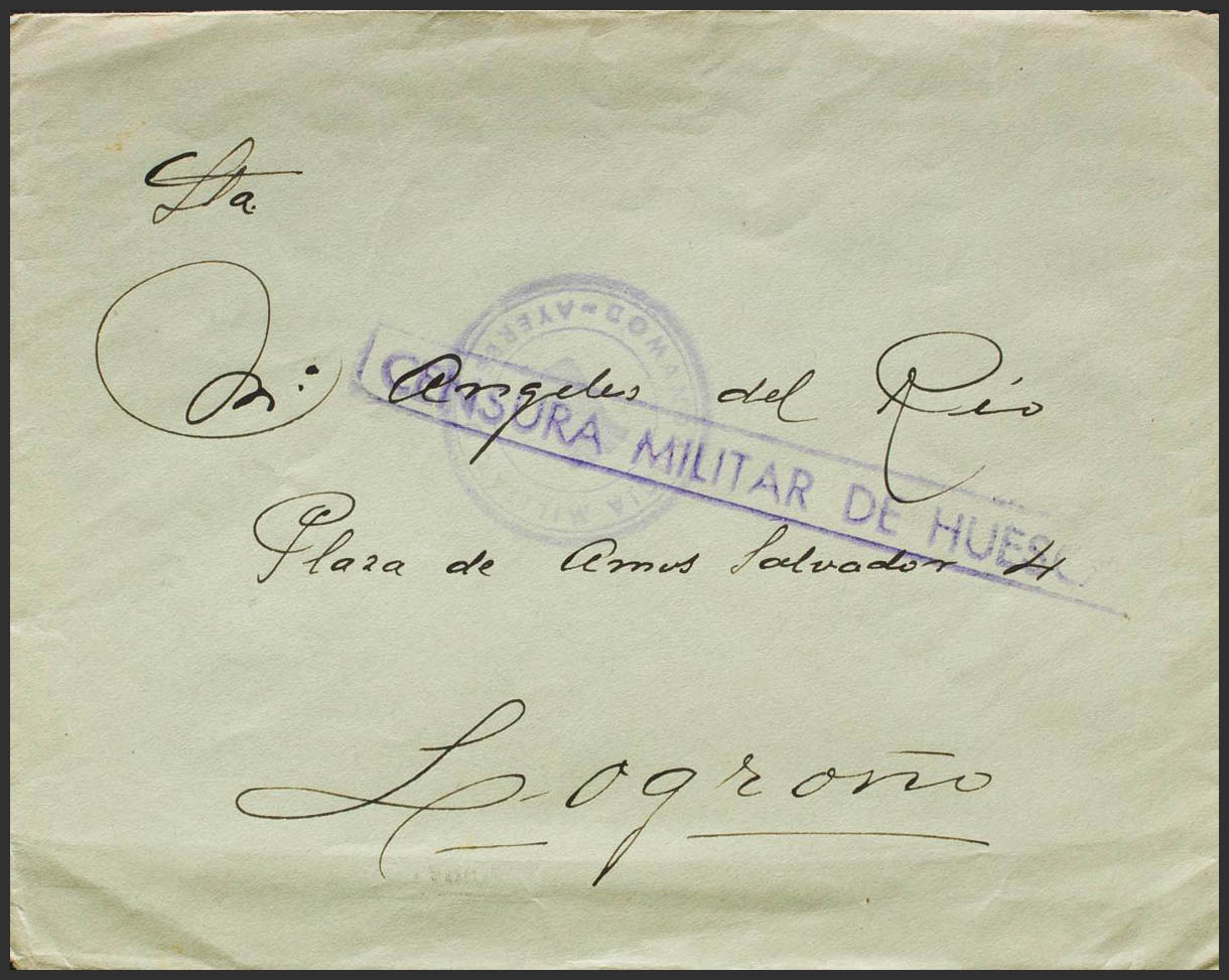 Guerra Civil. Censura Militar Bando Nacional. COMANDANCIA MILITAR / AYERBE, al dorso llegada. MAGNIFICA.