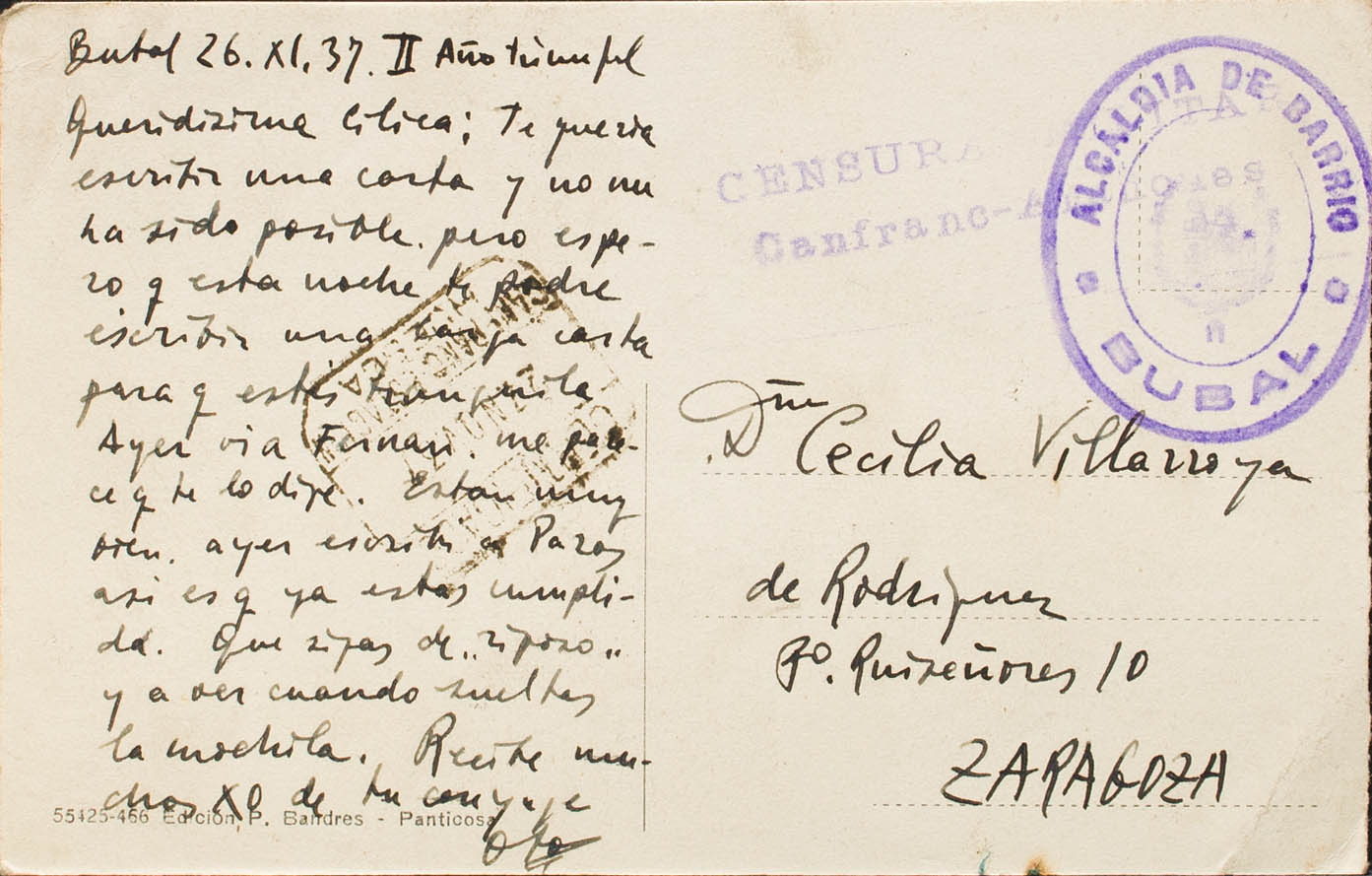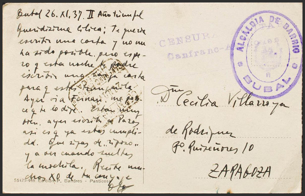 Guerra Civil. Censura Militar Bando Nacional. CENSURA MILITAR / CANFRANC-ARAÑONES. MAGNIFICA.