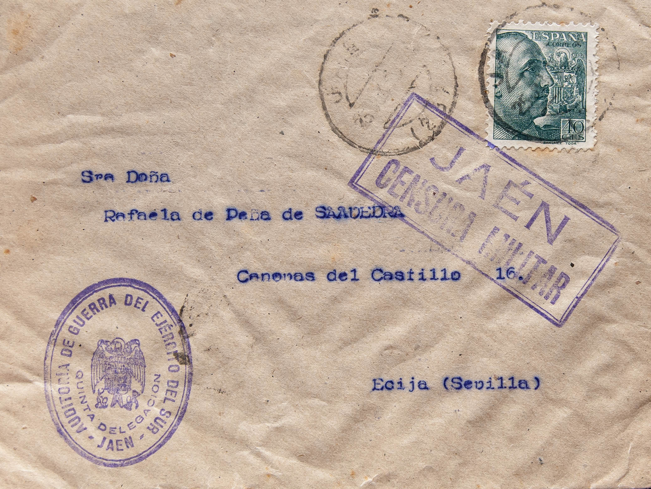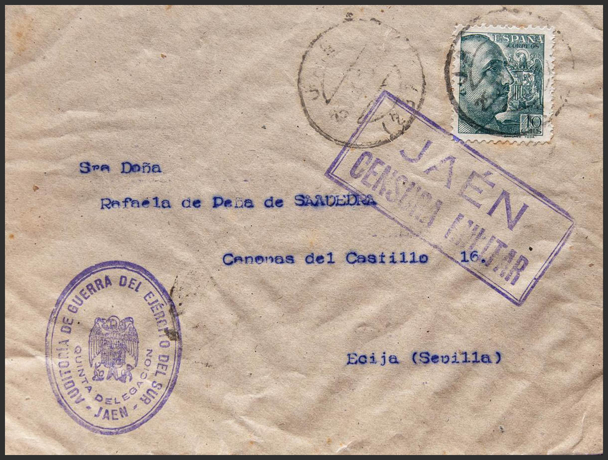 Guerra Civil. Censura Militar Bando Nacional. JAEN a ECIJA. MAGNIFICA.