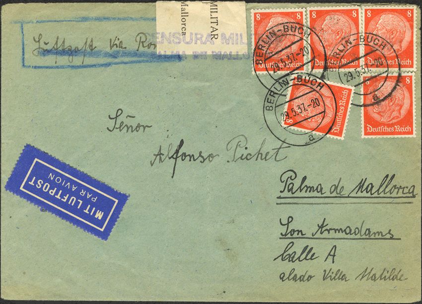 Guerra Civil. Censura Militar Bando Nacional. Procedente de Alemania.