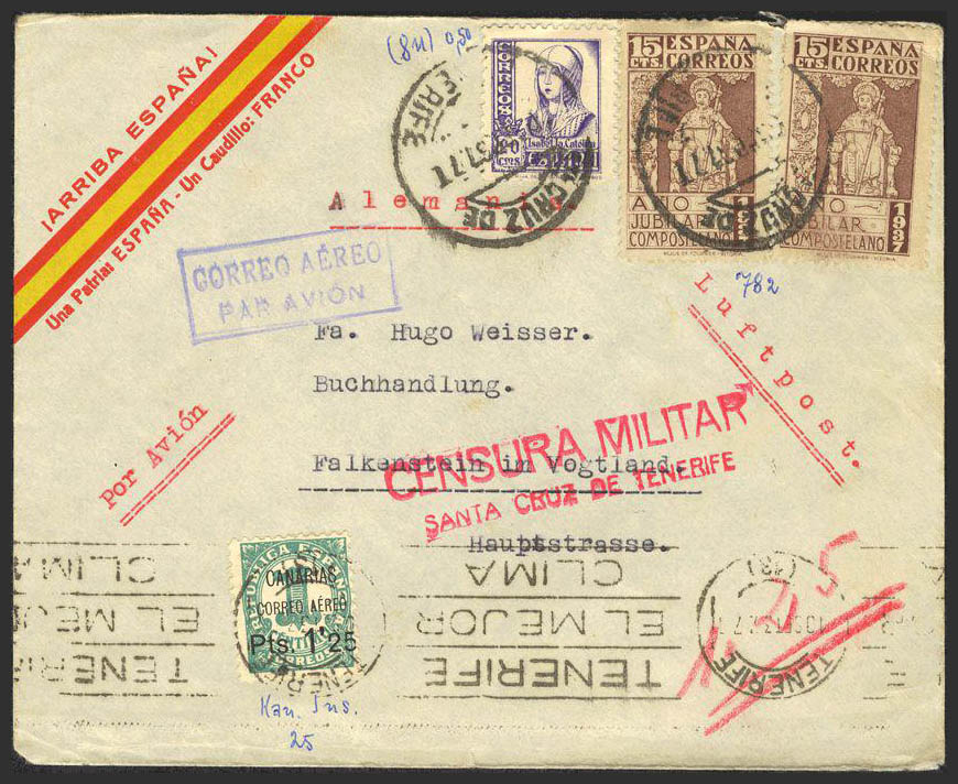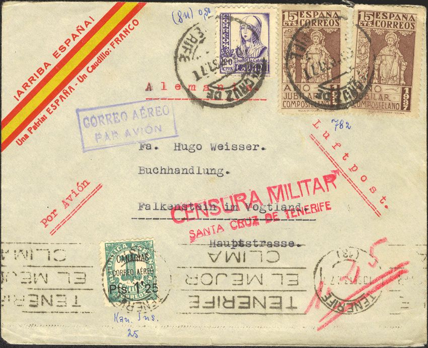 Guerra Civil. Censura Militar Bando Nacional. Sello de Canarias.
