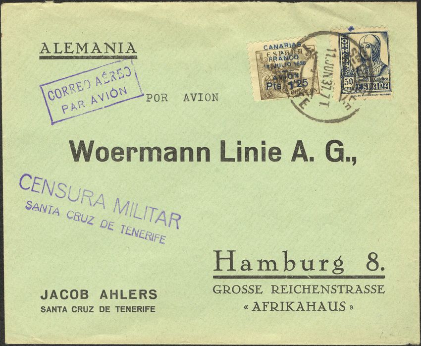 Guerra Civil. Censura Militar Bando Nacional. Sello de Canarias.