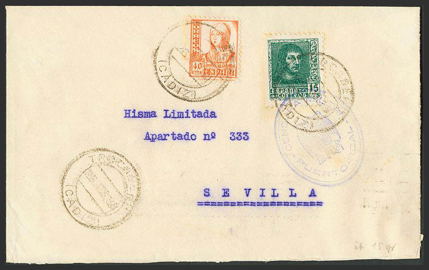 Guerra Civil. Censura Militar Bando Nacional. Al dorso llegada y viñeta.