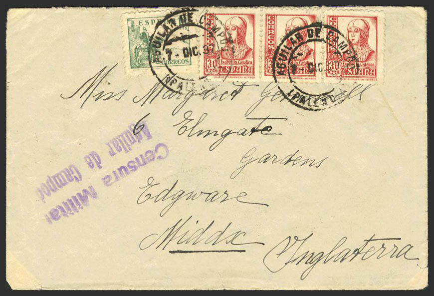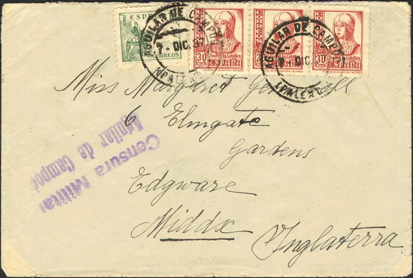 Guerra Civil. Censura Militar Bando Nacional. AGUILAR DE CAMPOO.