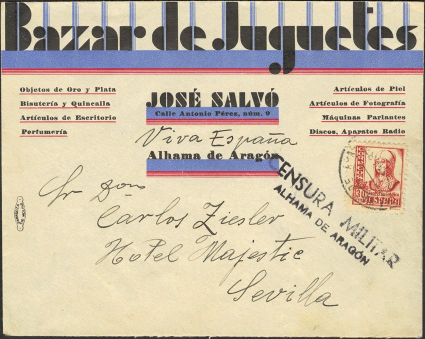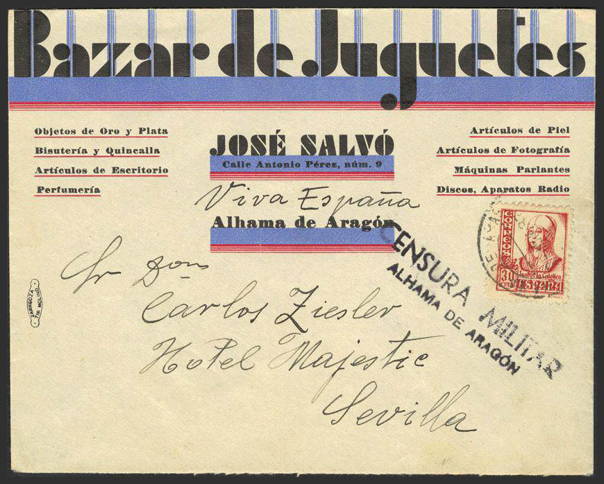 Guerra Civil. Censura Militar Bando Nacional. CENSURA MILITAR / ALHAMA DE ARAGON.