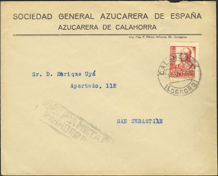 Guerra Civil. Censura Militar Bando Nacional. CENSURA MILITAR / CALAHORRA.