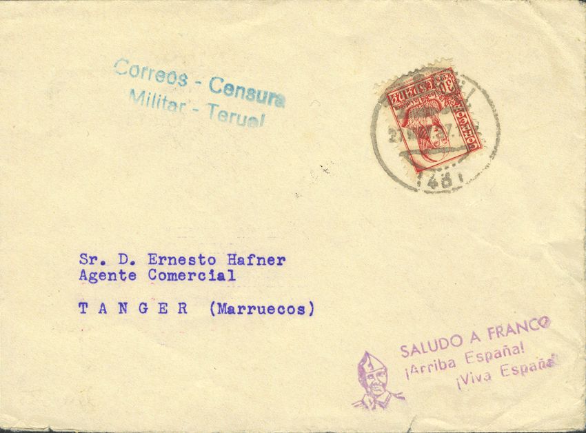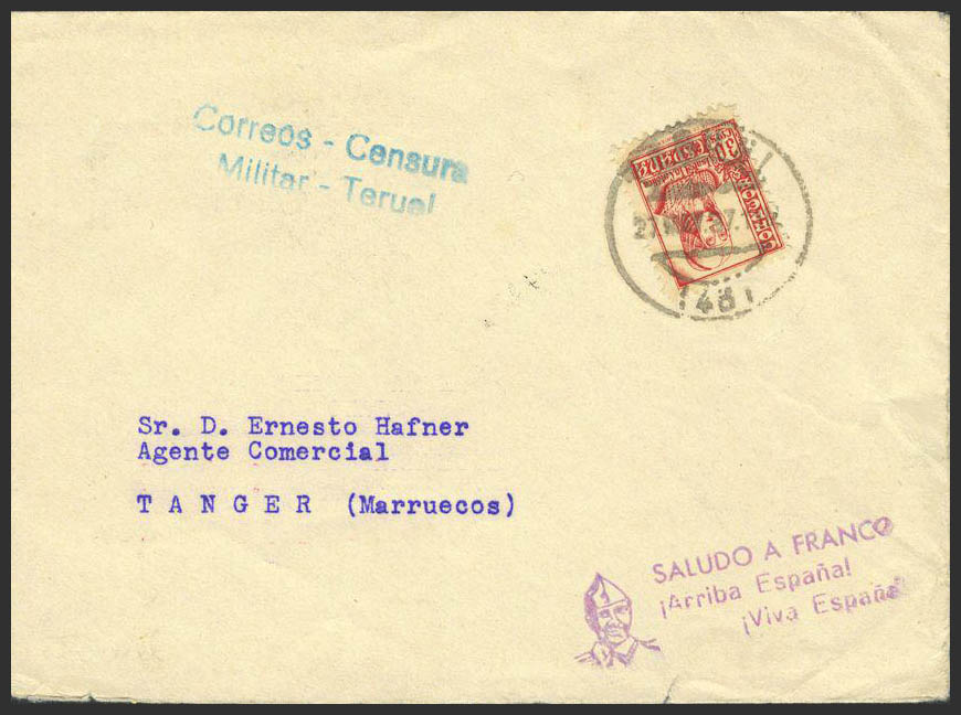 Guerra Civil. Censura Militar Bando Nacional. Al dorso llegada.