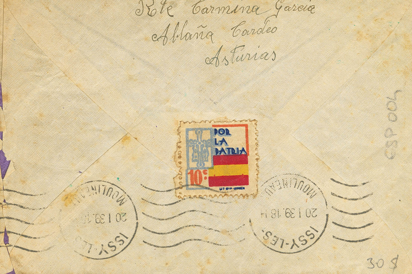 Guerra Civil. Censura Militar Bando Nacional. ABLAÑA a PARIS. CENSURA MILITAR / MIERES, de Asturias. MAGNIFICA Y RARA.