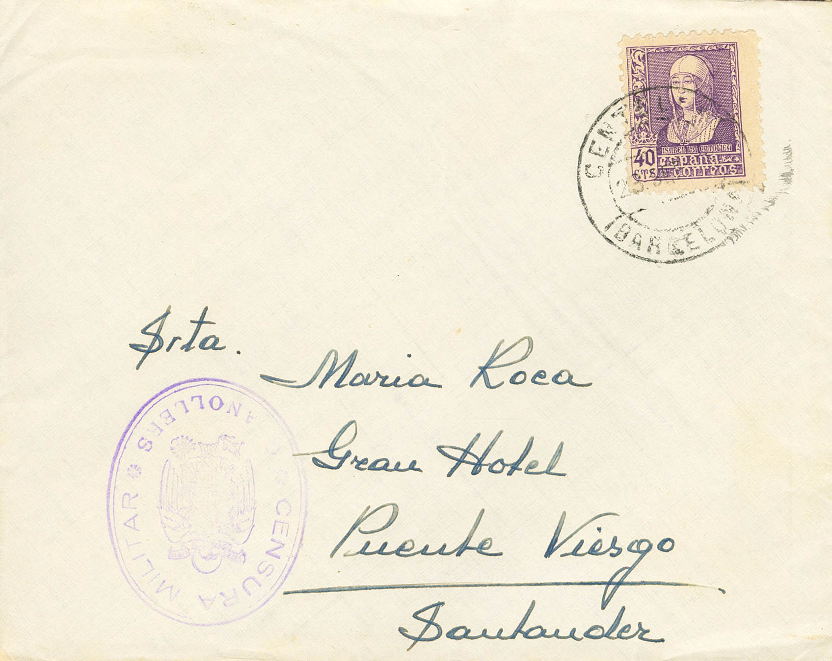 Guerra Civil. Censura Militar Bando Nacional. CENTELLES (BARCELONA) a SANTANDER. CENSURA MILITAR / GRANOLLERS. MAGNIFICA.