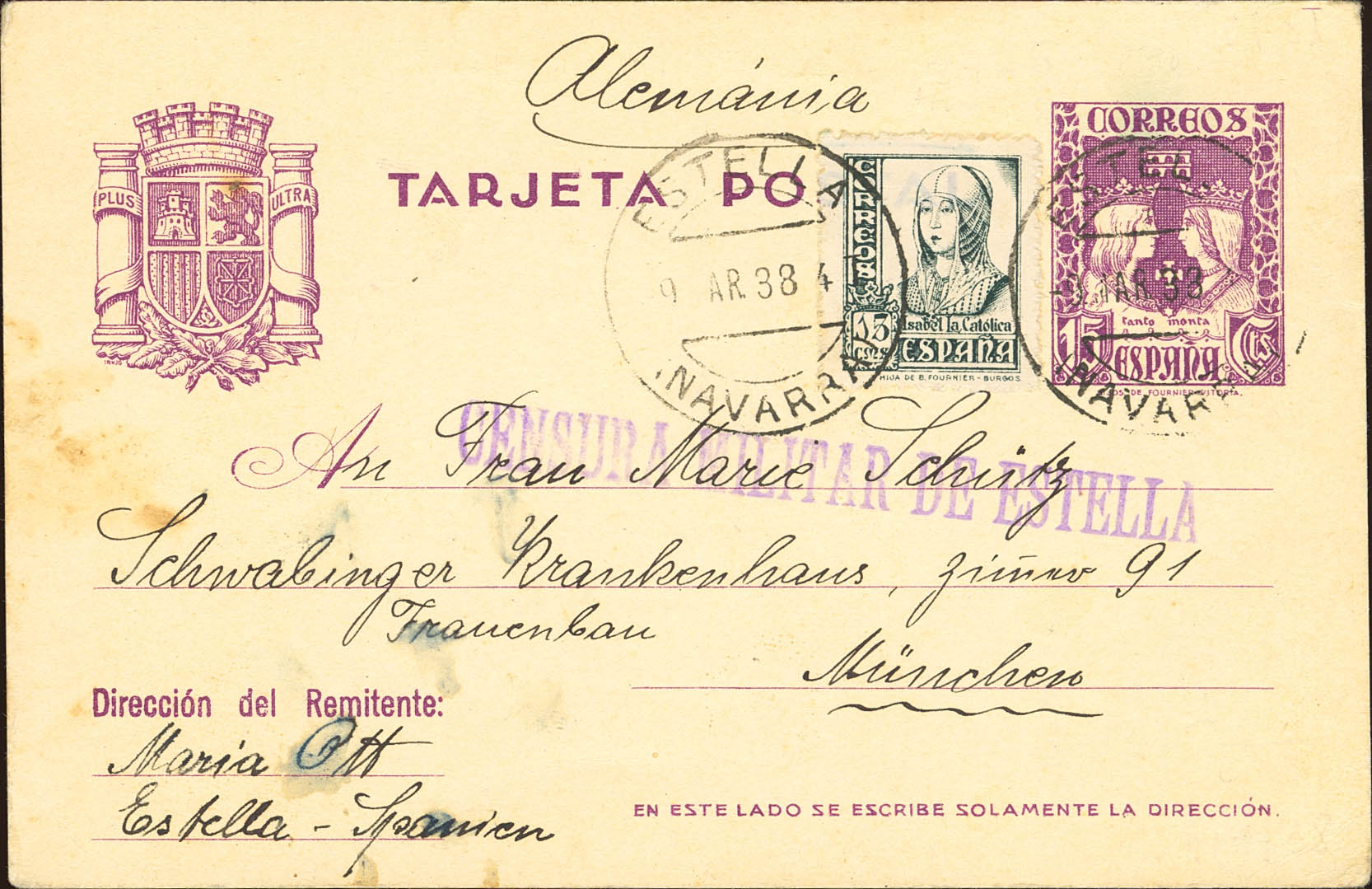 Guerra Civil. Censura Militar Bando Nacional. CENSURA MILITAR DE ESTELLA, en Navarra. MAGNIFICA.