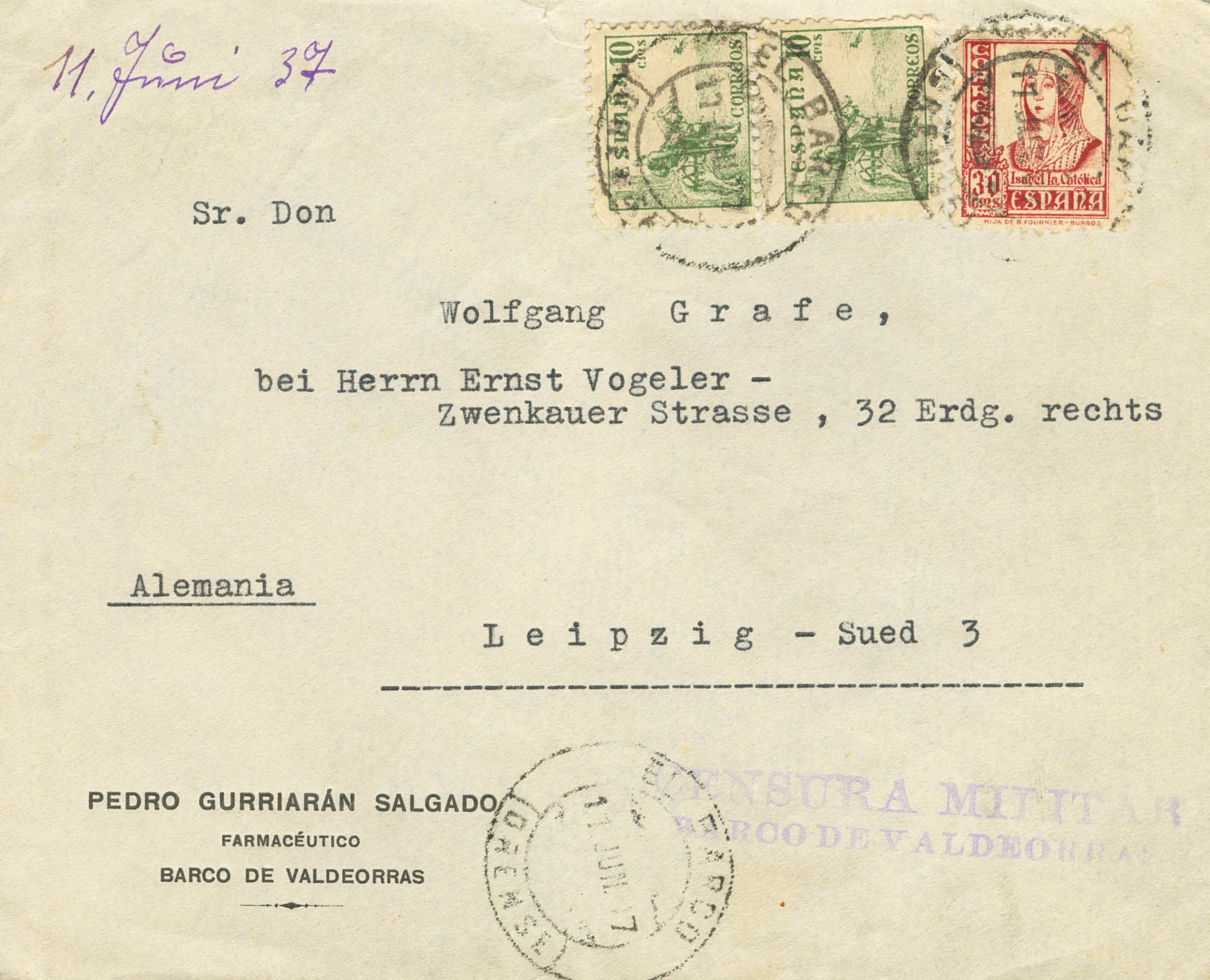 Guerra Civil. Censura Militar Bando Nacional. CENSURA MILITAR / BARCO DE VALDEORRAS, de Orense. MAGNIFICA.