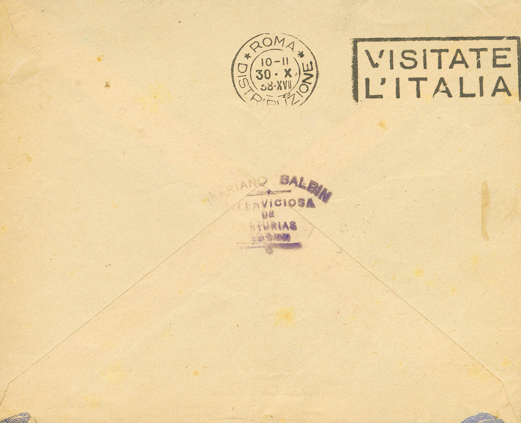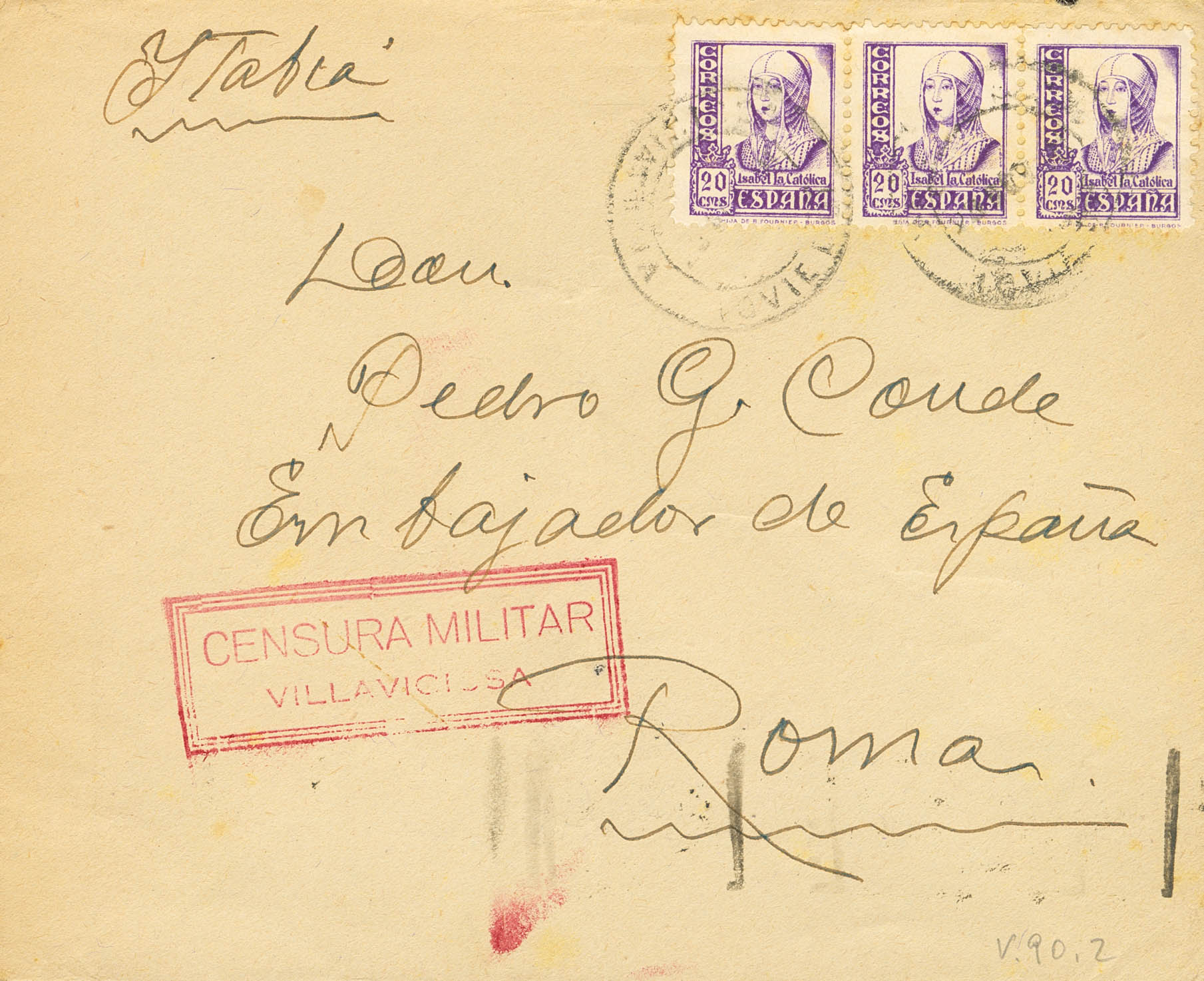 Guerra Civil. Censura Militar Bando Nacional. CENSURA MILITAR / VILLAVICIOSA, en Asturias, al dorso llegada. MAGNIFICA.