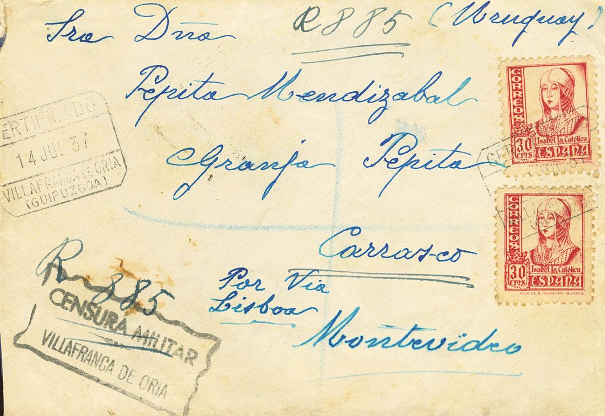 Guerra Civil. Censura Militar Bando Nacional. CENSURA MILITAR / VILLAFRANCA DE ORIA, al dorso llegada. MAGNIFICA.