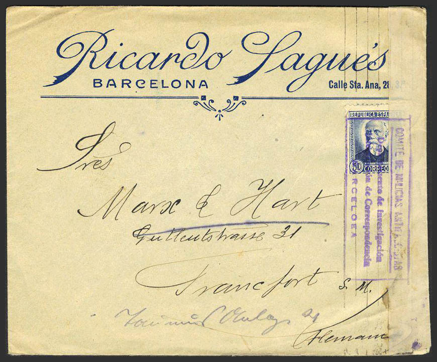 Guerra Civil. Censura Militar Bando Nacional. COMITE DE MILICIAS ANTIFASCISTAS. MAGNIFICA.