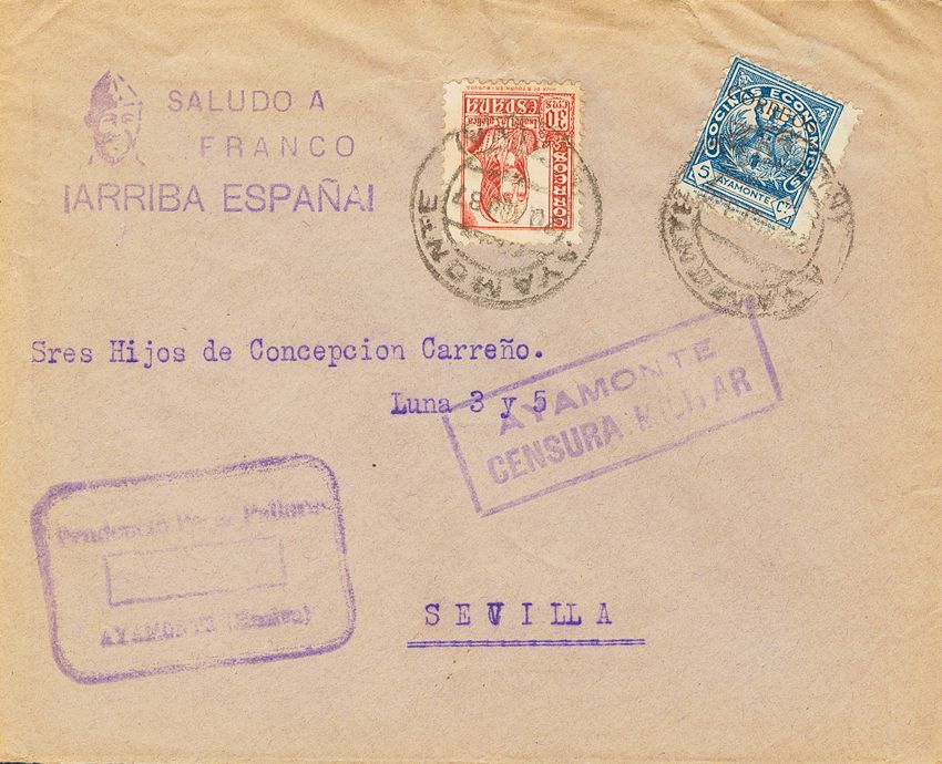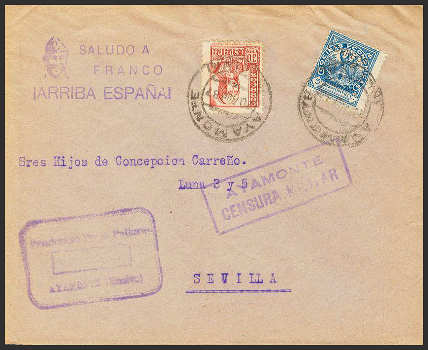 Guerra Civil. Censura Militar Bando Nacional. AYAMONTE / HUELVA. MAGNIFICA.