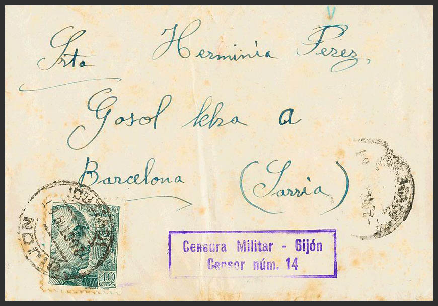Guerra Civil. Censura Militar Bando Nacional. GIJON / (OVIEDO). MAGNIFICA.