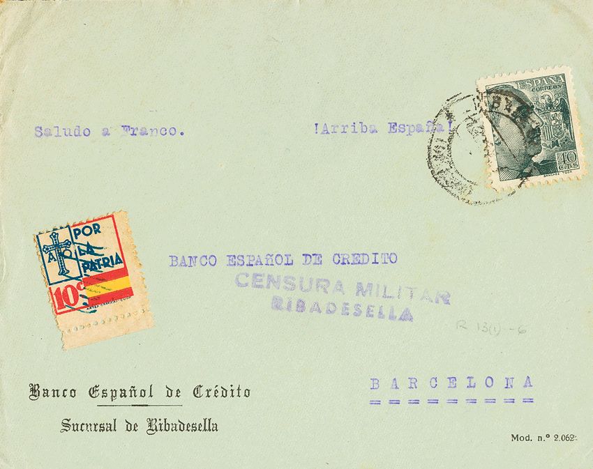 Guerra Civil. Censura Militar Bando Nacional. CENSURA MILITAR / RIBADESELLA. MAGNIFICA.