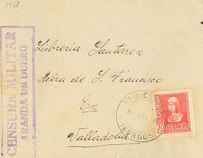 Guerra Civil. Censura Militar Bando Nacional. VADOCONDES / (BURGOS), al dorso llegada. MAGNIFICA.
