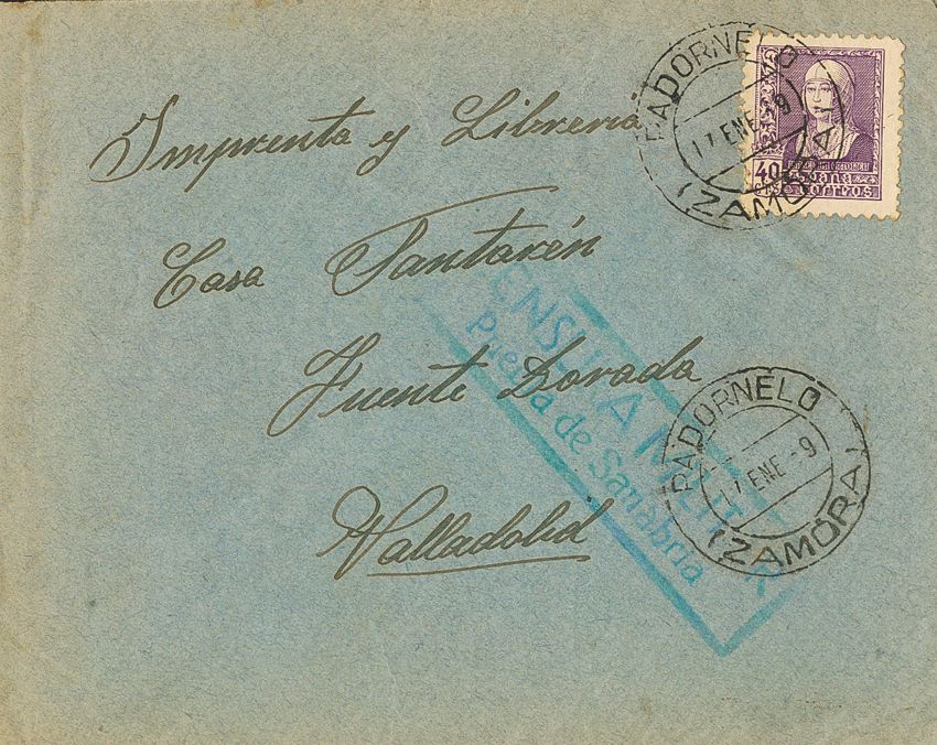 Guerra Civil. Censura Militar Bando Nacional. PADORNELO / (ZAMORA), al dorso tránsito. MAGNIFICA.