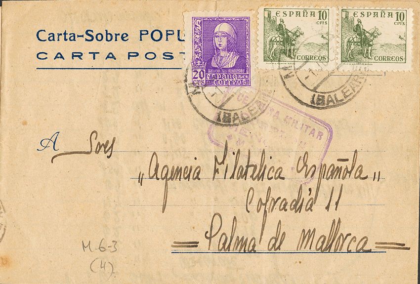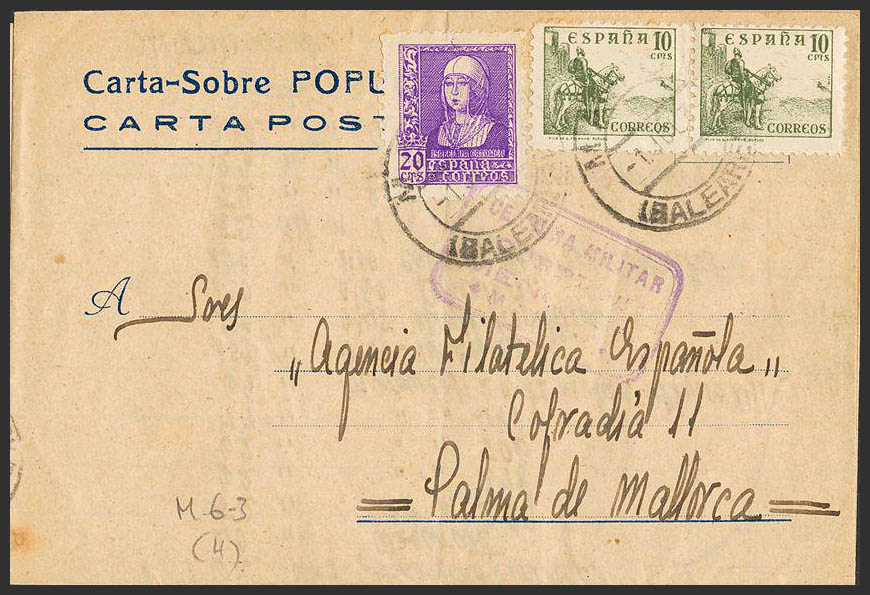 Guerra Civil. Censura Militar Bando Nacional. CENSURA MILITAR / COREOS / MENORCA. MAGNIFICA.