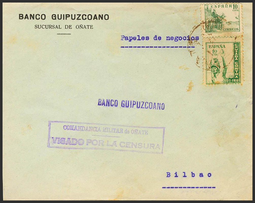 Guerra Civil. Censura Militar Bando Nacional. COMANDANCIA MILITAR DE OÑATE / VISADO POR LA CENSURA. MAGNIFICO.