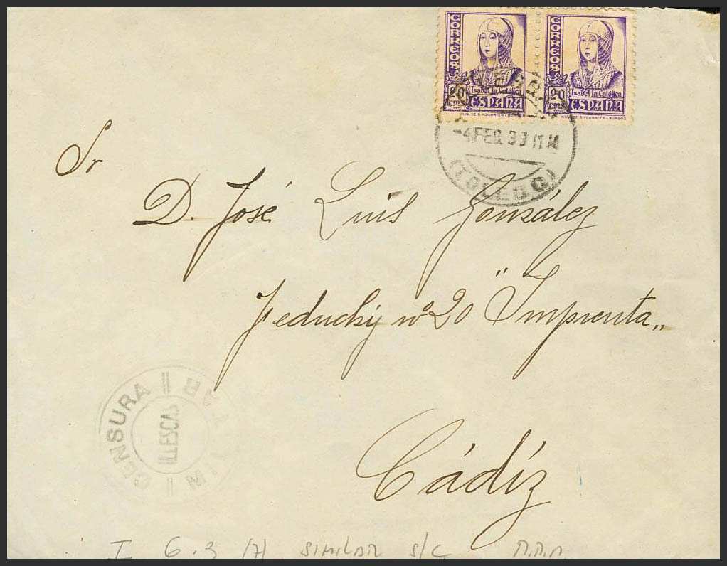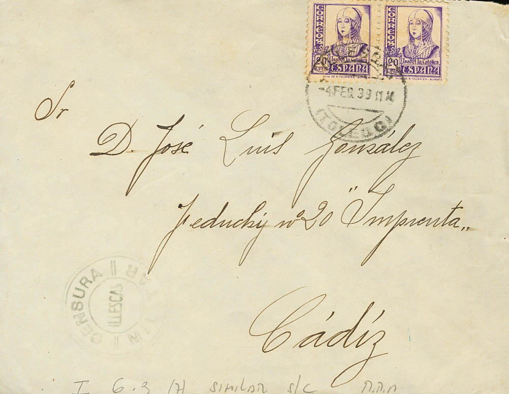 Guerra Civil. Censura Militar Bando Nacional. CENSURA / MILITAR / ILLESCAS. MAGNIFICA Y RARA.
