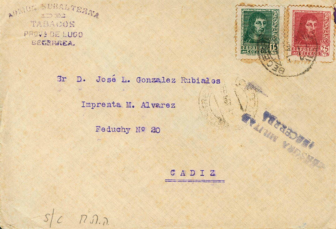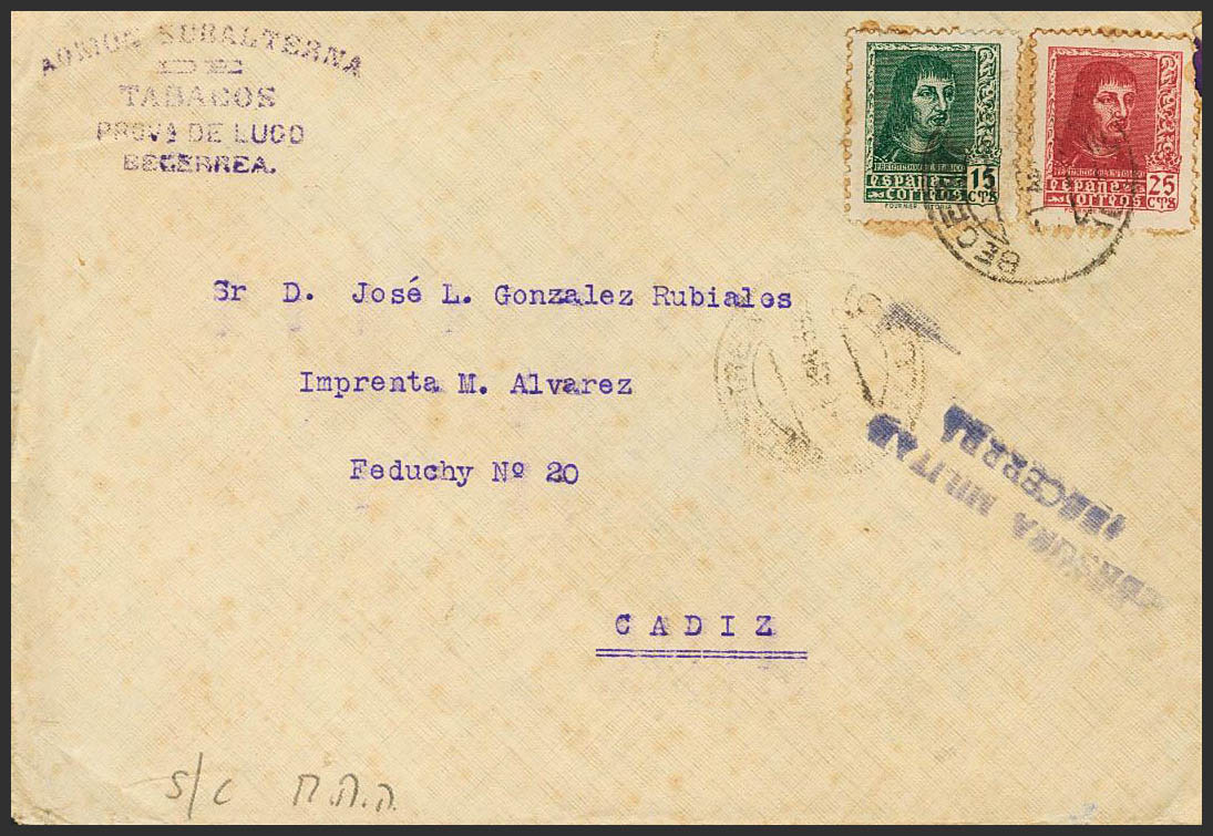 Guerra Civil. Censura Militar Bando Nacional. CENSURA MILITAR / BECERREA, al dorso llegada. MAGNIFICA.