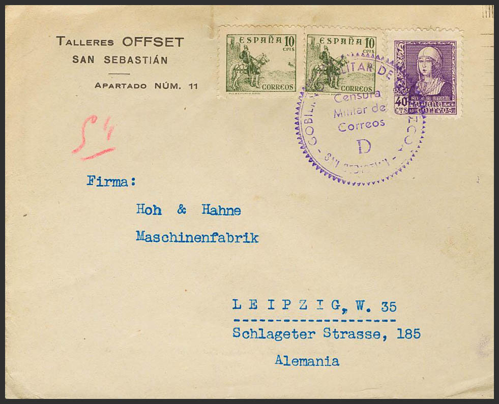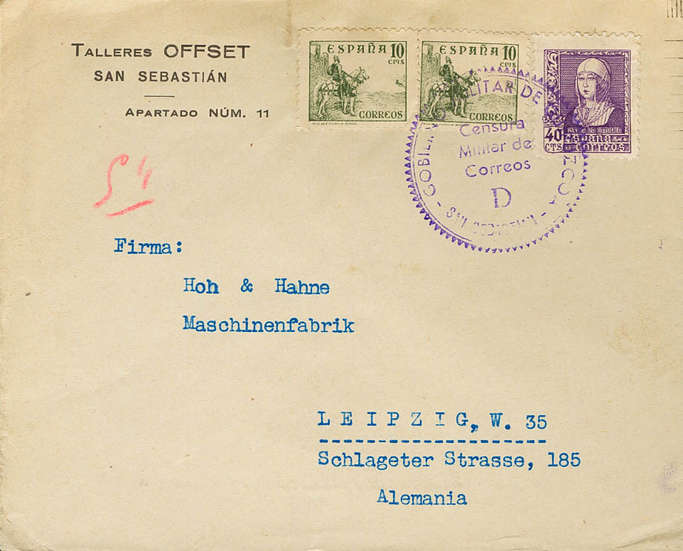 Guerra Civil. Censura Militar Bando Nacional. GOBIERNO MILITAR / DE / GUIPUZCOA. MAGNIFICA.