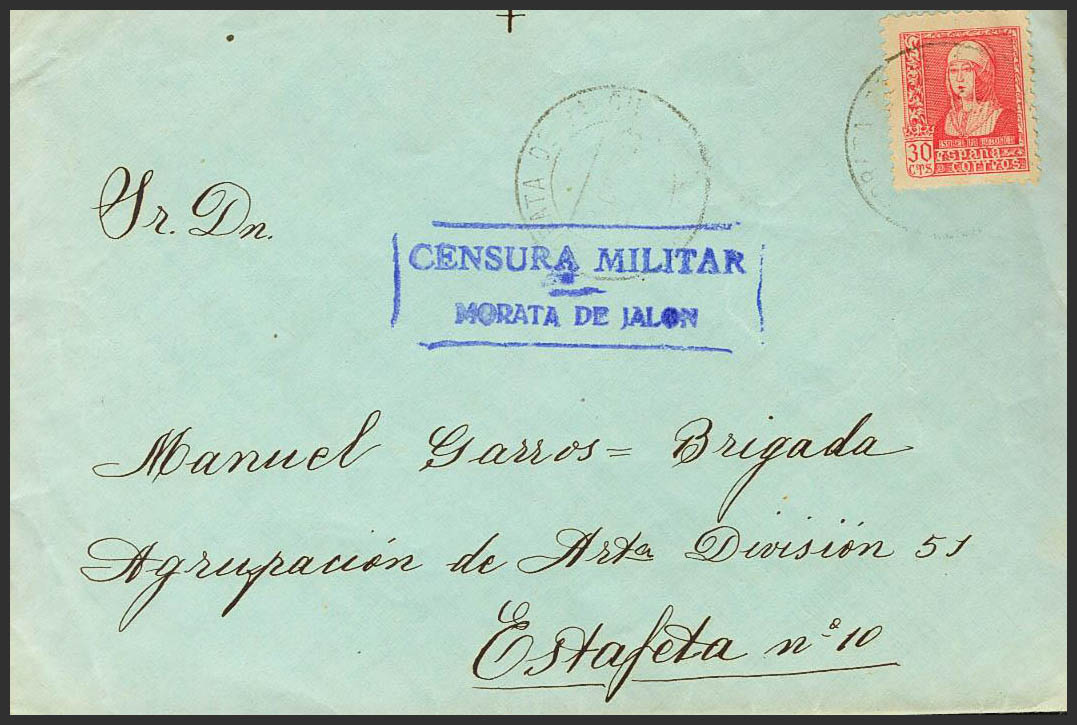 Guerra Civil. Censura Militar Bando Nacional. MORATA DE JALON / CENSURA MILITAR. MAGNIFICA.